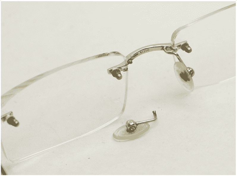 We will reattach the left nose pad arm on your Cartier rimless eyeglass frame using precision laser welding or replace both nose pads quickly and professionally.